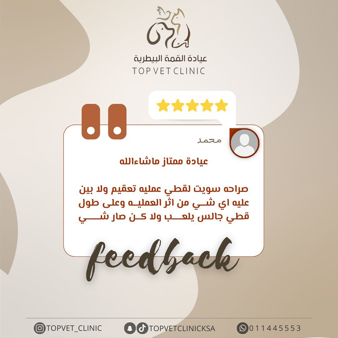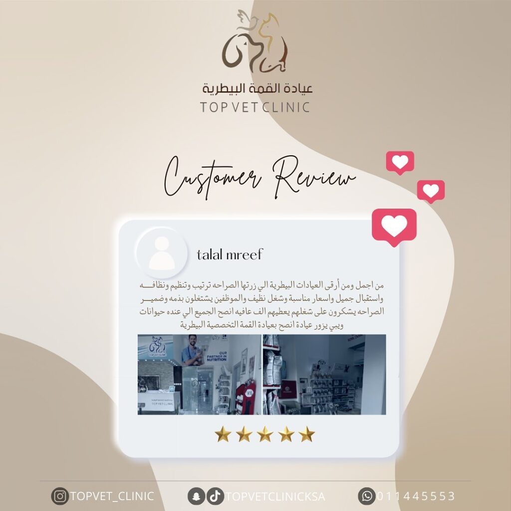 إذا كنتم تبحثون عن عيادة بيطرية موثوقة ومخصصة في الرياض، فإننا نرحب بكم في عيادتنا. اتصلوا بنا اليوم لتحديد موعد لزيارة حيواناتكم الأليفة والعناية بها بأفضل طريقة ممكنة.